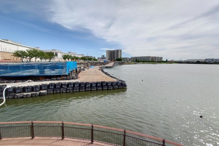 2025年度中の施設オープンを目指し、現在では水上デッキの鉄骨が組み上がるなど、整備工事が着実に進行しています。水上デッキや桟橋、商業空間、アクティビティ拠点といったハード面の整備に加え、水上イベントや地域連携型のソフト事業も計画されており、「越谷レイクタウン」らしい“次世代型水郷都市”の象徴となる空間の創出が期待されています。