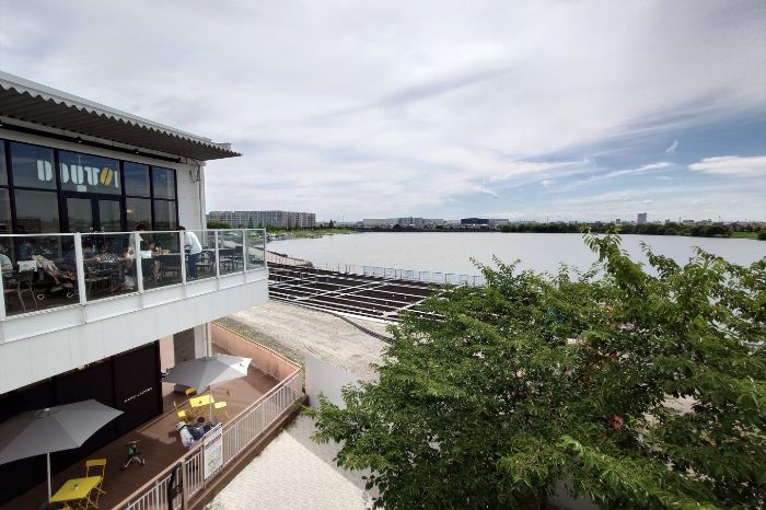 大相模調節池の湖面にせり出すかたちで、水上デッキと一体となった商業施設の整備が進められています。このデッキは、幅約16メートル、延長約180メートルにわたって整備され、カフェや物販店舗など、計5店舗程度の出店が予定されています。設計にあたっては、水辺との親和性や眺望の良さ、風景の変化に対応した空間づくりが重視され、植栽やベンチなどのファニチャーも設置される予定です。