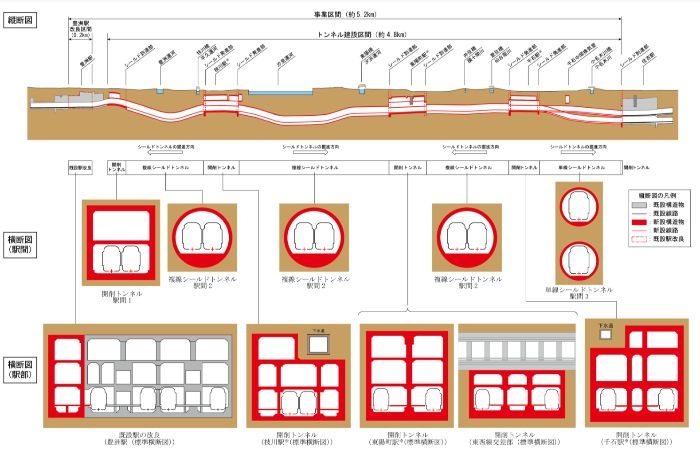 新設される枝川駅(仮称)は三つ目通り直下に建設され、相対式ホームを持つ地下3階構造。交通量の多いエリアでの施工となるため、安全と周辺環境への配慮が徹底される。