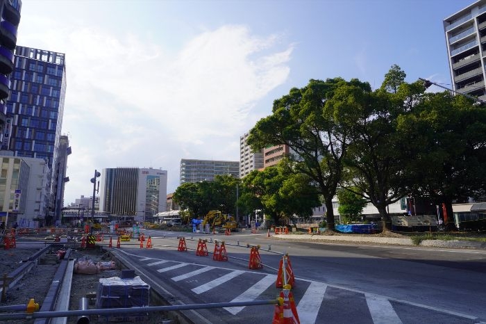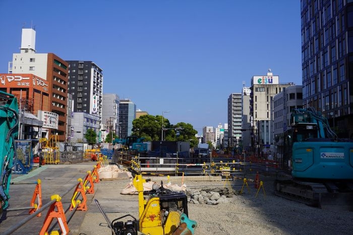 事業は令和4年度から西側の先行整備が始まり、段階的に工事が進められています。現在は駅前の基盤整備と円形デッキの工事が本格化しており、令和7年(2025年)12月には円形デッキが完成予定です。その後もバスターミナルや周辺の歩行者広場の整備が順次進められ、駅前全体の完成度が高められていきます。