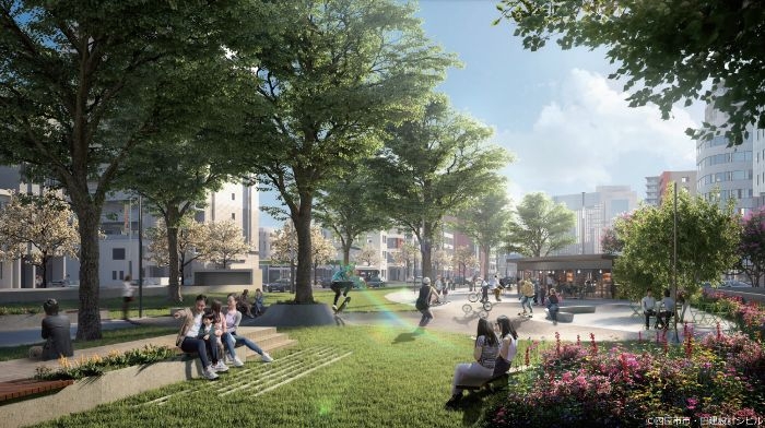 2025年12月完成予定の円形デッキによる都市空間の刷新。 - 事業の目的
