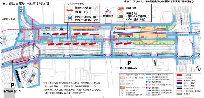 中央通り再編事業と近鉄四日市駅バスターミナル整備の一体的推進。