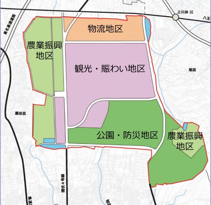 計画地である旧上瀬谷通信施設地区は、かつて米軍により長期間使用されていた約248ヘクタールの広大な跡地です。2015年に返還されたのち、横浜市が「土地利用基本計画」を策定し、農業振興、観光・賑わい、物流、防災・公園という4つのエリアに区分して再整備が進められています。