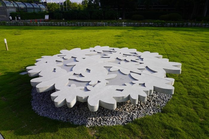 建物や広場のデザインには細部にまでこだわりが見られます。外装や装飾には広島の名産や名所をモチーフとしたシルエットが散りばめられ、訪れる人に発見の楽しさを提供しています。例えば芝生養生期間に設置されるガーランドや、建物のガラスに貼られた衝突防止シールなどに広島らしいデザインをあしらうことで、親しみやすさを演出しました。