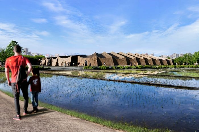 新スタジアムの最大の特徴は、福島の木材を用いながら、市民が積極的に関わる「参加型の建設手法」を導入する点です。日本の伝統行事である「式年遷宮」の考え方をヒントに、地域資源の循環と人々の技術継承を組み合わせ、建築を社会に開かれた活動として位置づけています。