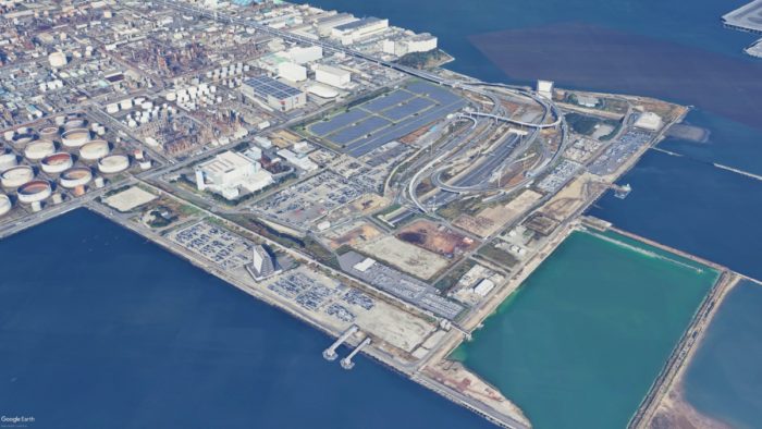 川崎市南端の埋立地、面積約93ha、昭和53年廃棄物処分場埋立、平成8年造成、京浜工業地帯の一角、首都圏および羽田空港へのアクセス良好、太陽光発電施設・資材置場の暫定利用。