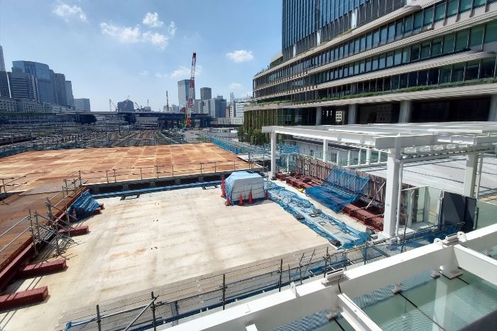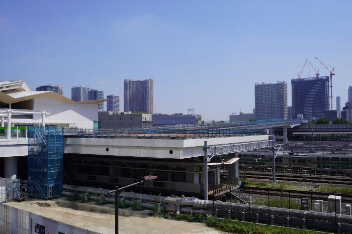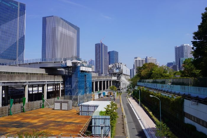 高輪ゲートウェイシティでは、JR品川駅北側地区の再開発に伴い、高輪側と芝浦港南地区を結ぶ歩行者専用道「新駅東側連絡通路」の整備が進められています。延長約240メートル、幅員11~17メートルの連絡通路は、JR線上空に橋梁を架け、バリアフリーに対応したデッキレベルの歩行者ネットワークとして設計され、地域住民や来街者の回遊性向上を目指します。高輪ゲートウェイ駅前の広場や周辺公園、既存の歩行者通路と連携し、将来的には三田・田町方面や国道15号を経由して周辺地区との接続性も強化されます。