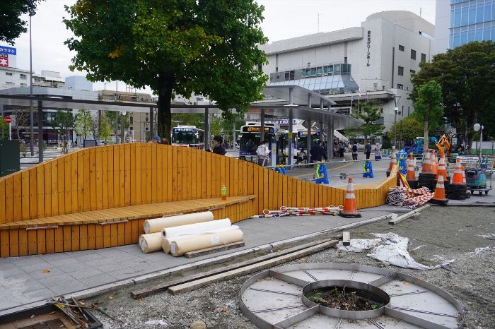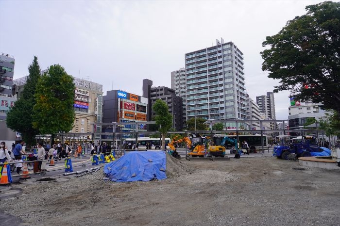 現在は南側ロータリー整備や広場口建替が進む最終段階。
