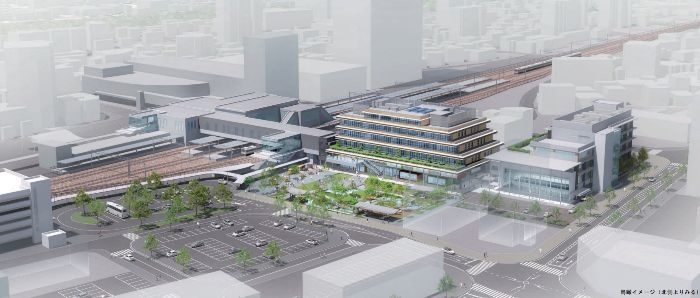 虎渓用水広場と一体化した駅前エリアの新たな顔。