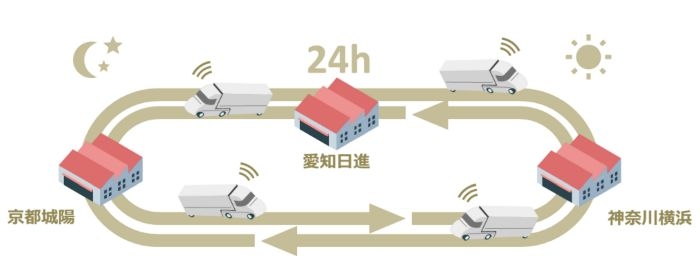 横浜・城陽と連携し、関東・中京・関西を結ぶ幹線輸送の効率化。