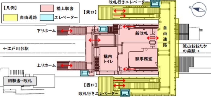 *初石駅橋上駅舎と自由通路の配置イメージ