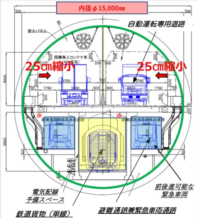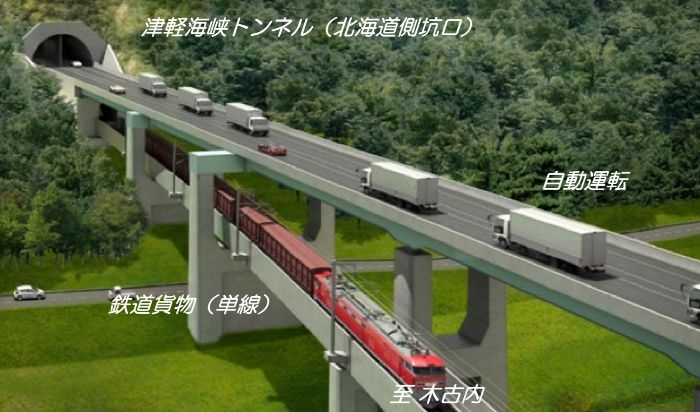 計画中の新トンネルは全長約31km、世界最長級の道路トンネルとなる見込みです。自動運転車専用道路(片側1車線)と単線の貨物鉄道を併設し、PFI方式での建設を想定しています。自動運転技術の普及を前提に道路幅員を最適化し、緊急車両や火災対策、最新防災システム(HI-FOGスプリンクラー、監視カメラ、避難滑り台など)を導入。密閉型トンネル構造により湧水がなく、維持管理費の大幅削減も見込まれています。アクセス道路や在来線接続も整備され、北海道・青森側の物流基盤が強化されます。