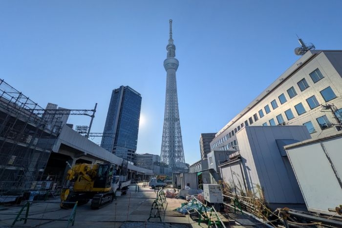 2025年3月には上下線の高架化が完了し踏切が撤去され、さらに2025年12月7日の始発列車より新駅舎(新東口改札)および新下りホームの供用が開始されました。周辺では都市計画道路の整備も進められており、東京スカイツリーの玄関口にふさわしい、安全で快適な歩行者空間の形成が着実に進められています。