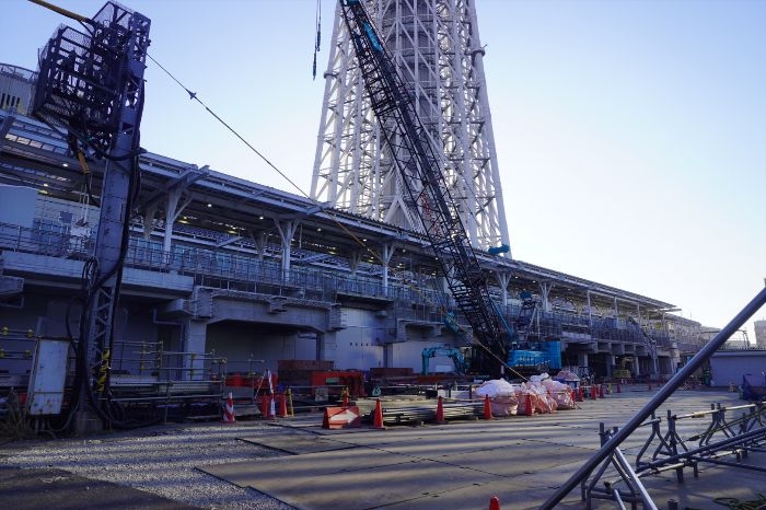 駅施設としては、とうきょうスカイツリー駅のホームを約150m東側へ移設し、延長170〜210m、幅員2~8mの新ホームを整備しています。