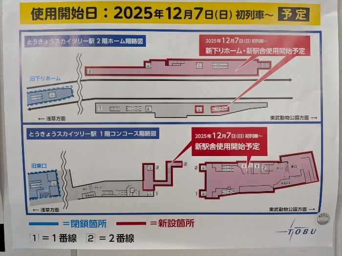 →墨田区 東武伊勢崎線(とうきょうスカイツリー駅付近)連続立体交差事業新駅舎及び新下りホーム使用開始のお知らせ(令和7年12月7日)