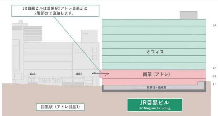 JR目黒駅直結の複合ビル「JR目黒ビル」の本体工事に着手する計画。