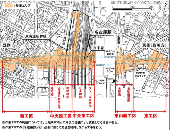 あわせて、地下鉄施設の改築工事も2026年10月31日まで実施されており、既存地下インフラとリニア駅施設を安全かつ円滑に接続するための再構成が進められています。名古屋駅周辺は、地下に複雑な鉄道・地下街・インフラが集中するエリアであるため、地中連続壁工事、仮受け構造、路面覆工など、段階的かつ慎重な施工が不可欠となっています。