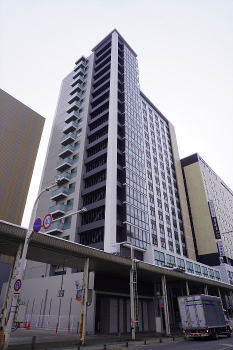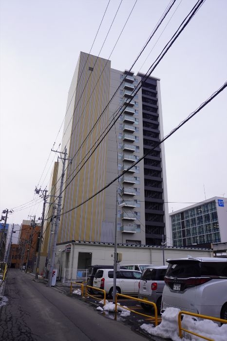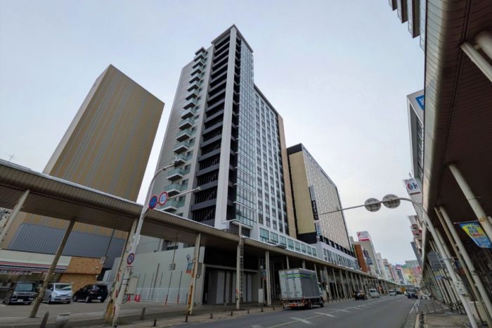新町通りから見たプレミスト青森新町ザ・タワーの様子です。