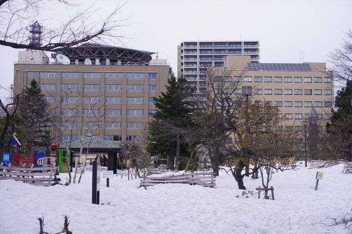 青い森公園から見たプレミスト青森新町ザ・タワーの様子です。