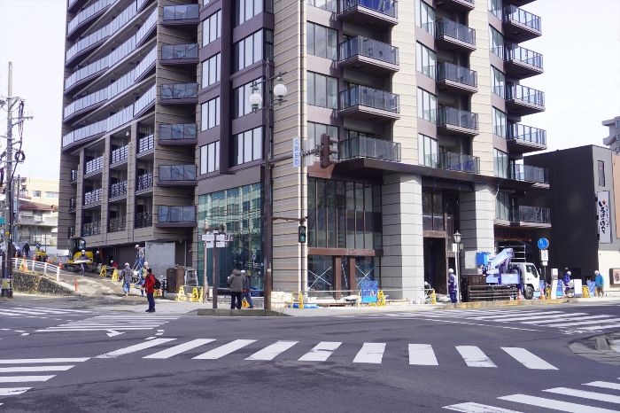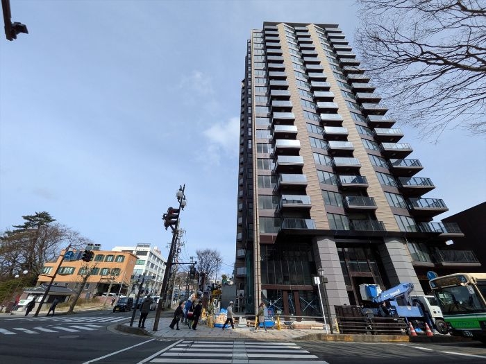 南西側から見たレーベン秋田 THE IMPERIAL TOWERの低層部分の様子です。