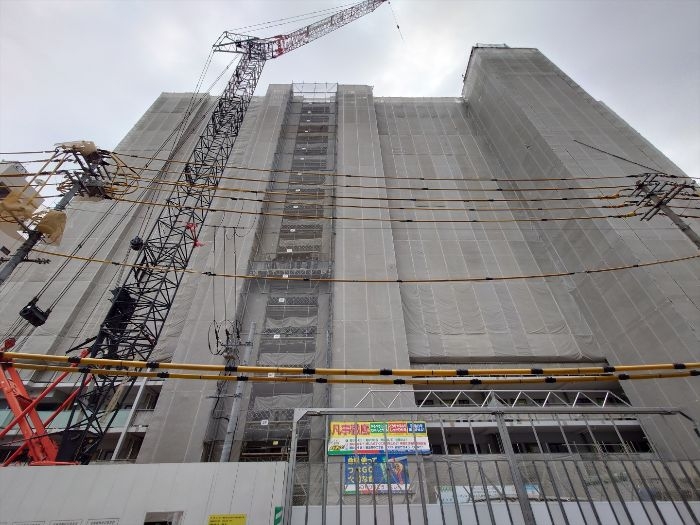 南東側から見た建設中のブリリア岡山中山下の様子です。