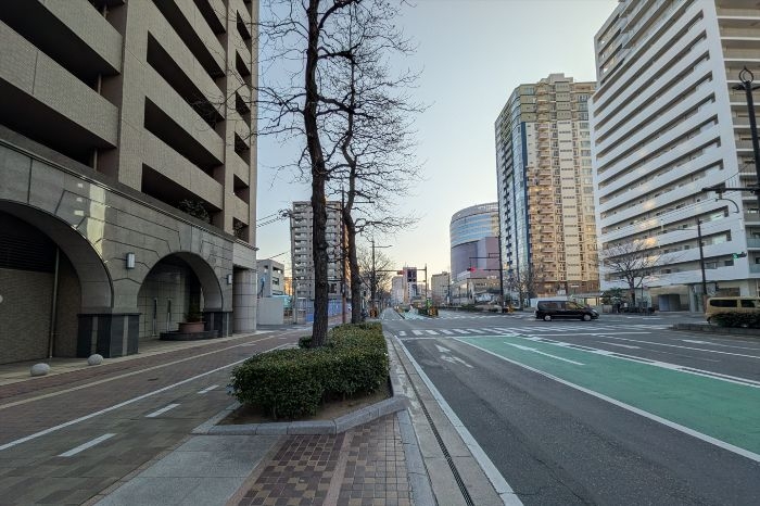 ロイヤルガーデンタワー天神町の建設地は、桃太郎大通りに面しています。