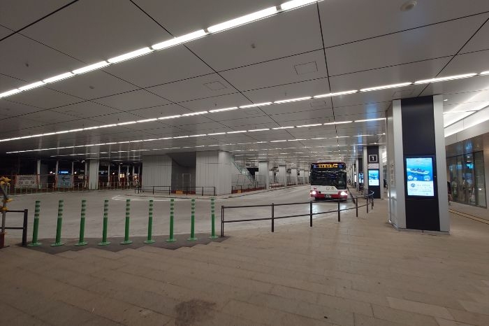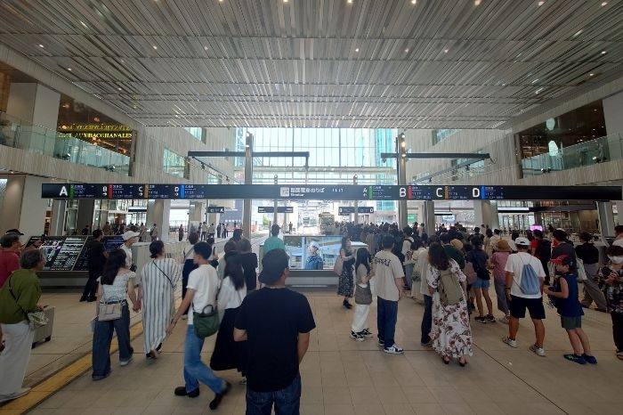 バス・タクシー乗降場や交通案内所の利用形態が順次更新されました。路線バスの乗降場は、ペデストリアンデッキや高架橋の工事のため、既存の広場内バスエリアを閉鎖し、令和6年6月2日(日)から新駅ビル1階部分を暫定バスエリアとして利用開始されています。