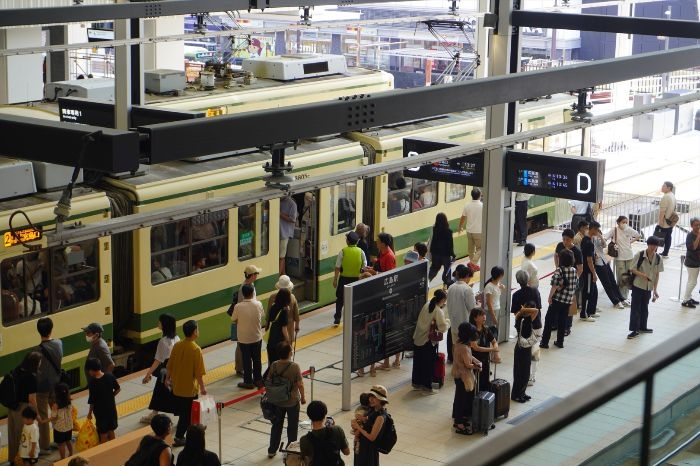 新駅は4面4線の頭端式ホームを備え、系統ごとにA~Dホームと降車専用ホームが配置され、1号線から6号線までの各系統に対応しています。Cホームは6号線(江波方面)専用の切欠きホームとして設けられており、地上ホーム時代と同様に系統ごとの運行管理が容易になっています。旧駅では1面の乗車ホームに多くの系統が集約されていたため混雑が課題でしたが、高架化とホーム分割により乗降がスムーズになり、旅客案内や混雑対策も効率化されました。