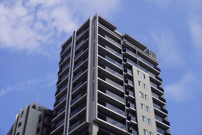 南西側から見たTheフローレンス横川駅前タワーレジデンスの高層部分の様子です。