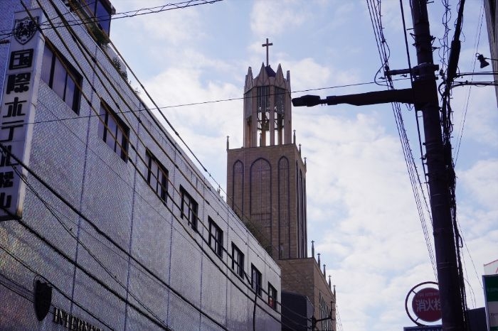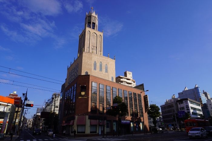 国際ホテル松山は教会のような尖塔が特徴的なデザインの建物でした。