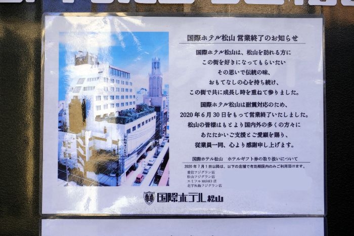 国際ホテル松山は、2020年6月30日に営業終了しています。