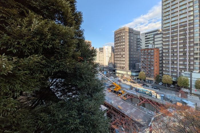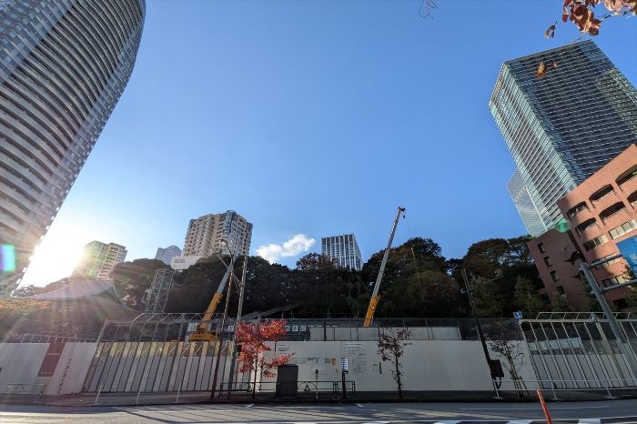 南東側から見た(仮称)愛宕地区第一種市街地再開発事業 H地区の建設地の様子です。既存建築物の解体、除去が完了していました。