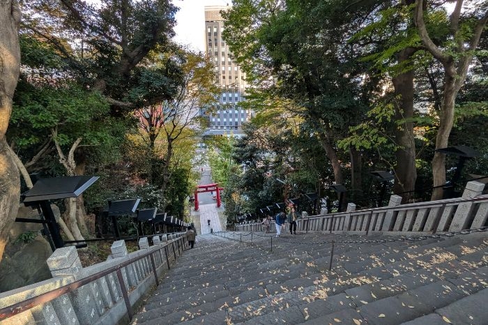 愛宕神社へ至る出世の石段です。傾斜角度は40度、全部で86段あります。