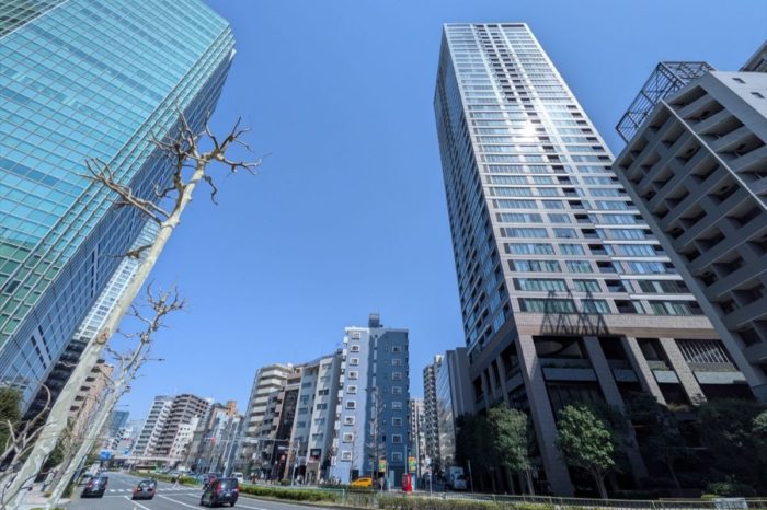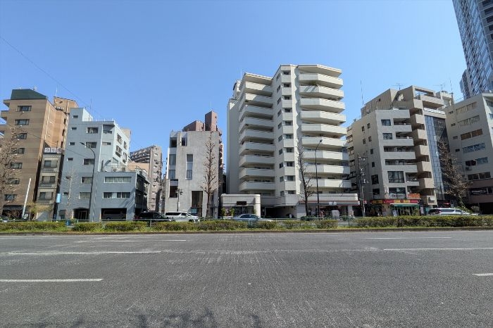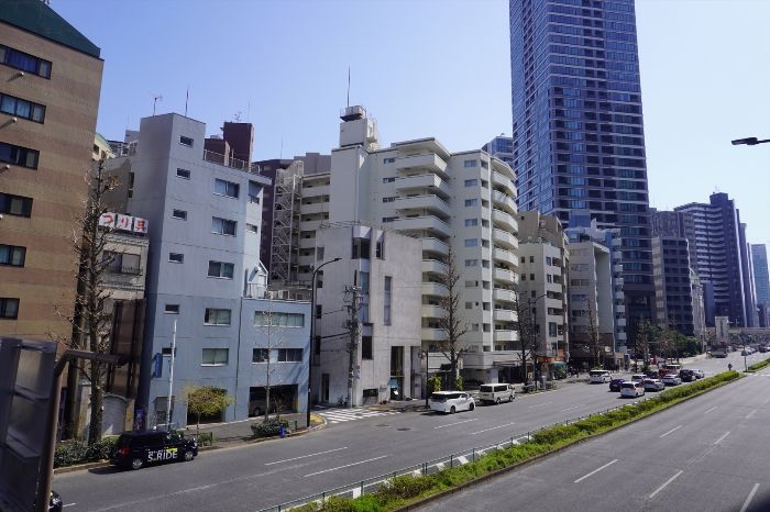 区域内には、ジェイパーク高輪やフラットウェル高輪、高輪梶ビル、藤波ビル、グレイス魚籃坂などの中高層マンションや雑居ビルが建ち並んでいます。