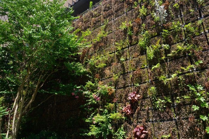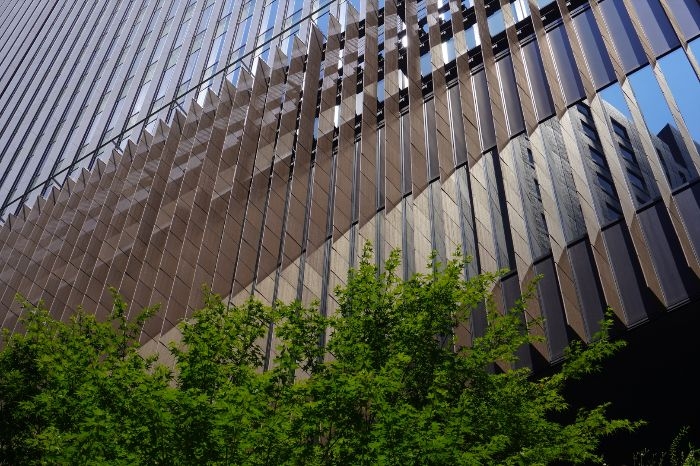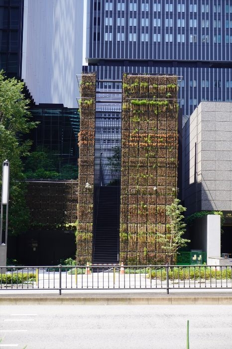 東側低層部分は、壁面緑化やマリオンが連続するものとなっています。