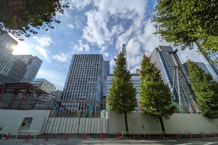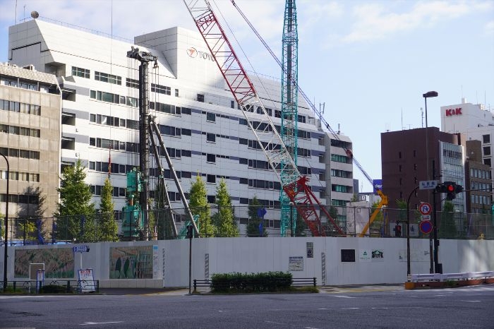 南西側から見た建設中の八重洲一丁目北地区第一種市街地再開発事業 北街区の様子です。北街区は2031年度着工予定となっています。