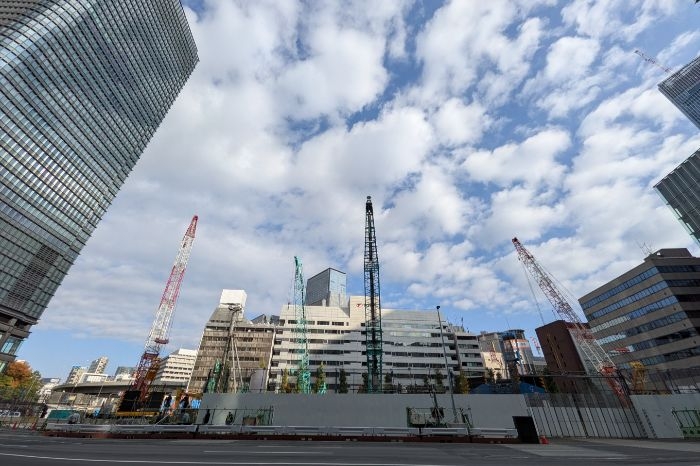 北側から見た建設中の八重洲一丁目北地区第一種市街地再開発事業 南街区の様子です。