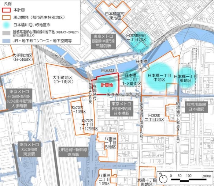東京メトロ銀座線、東西線、都営地下鉄浅草線「日本橋」駅、JR、東京メトロ「東京」駅