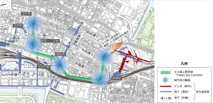 再開発区域南側は東京高速道路KK線の再生事業「Tokyo Sky Corridor」に隣接しています。