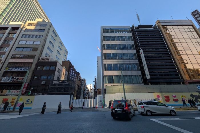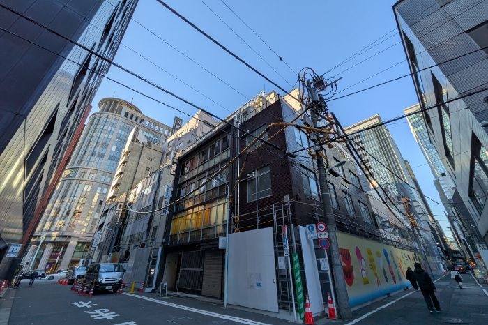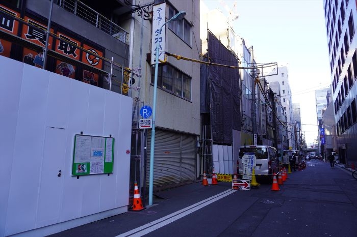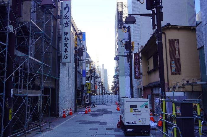 日本橋室町一丁目地区第一種市街地再開発事業 A街区の区域内の道路は閉鎖され、既存建築物の解体工事が始まっています。