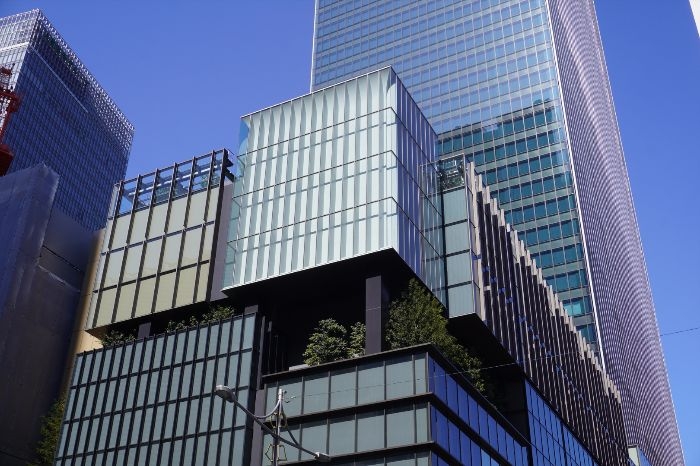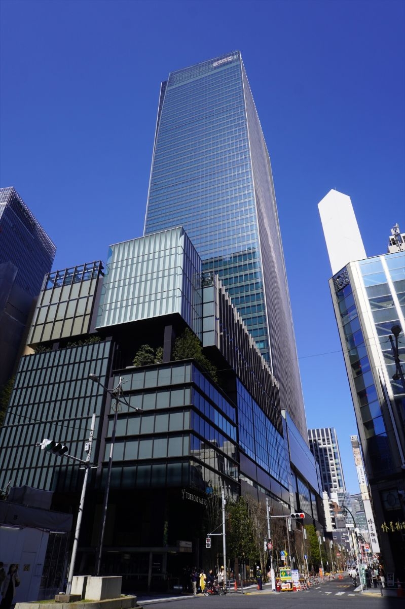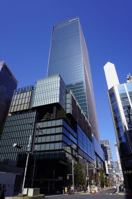 南東側から見たTOFROM YAESU TOWER (トフロム ヤエス タワー)の低層部分の様子です。
