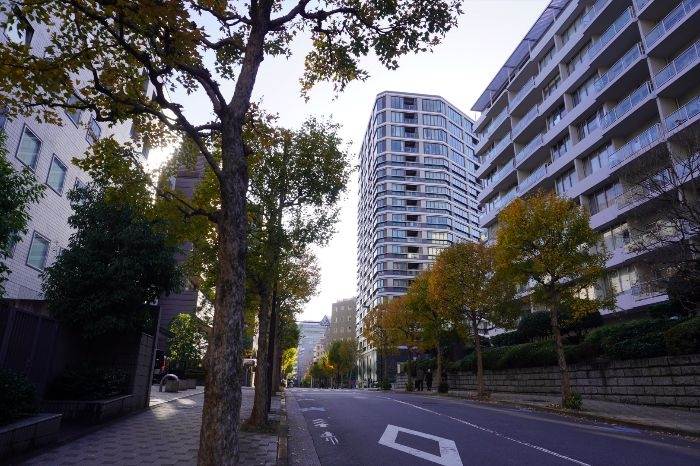 (仮称)麹町三番町マンション建替計画は、東側を大妻通り、南側を番町文人通りに面した場所に立地しています。