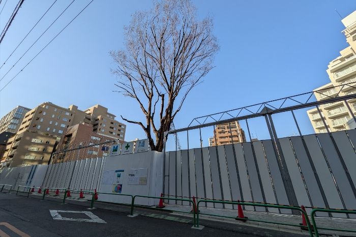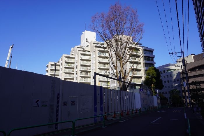 南東側から見た(仮称)麹町三番町マンション建替計画の建設地の様子です。2025年12月撮影。