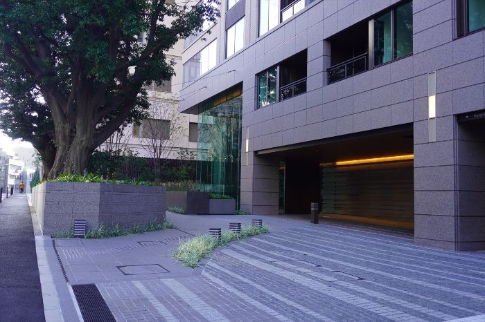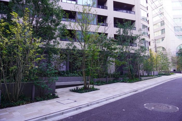 北東側から見たパークコート ザ・三番町ハウスの低層部分の様子です。