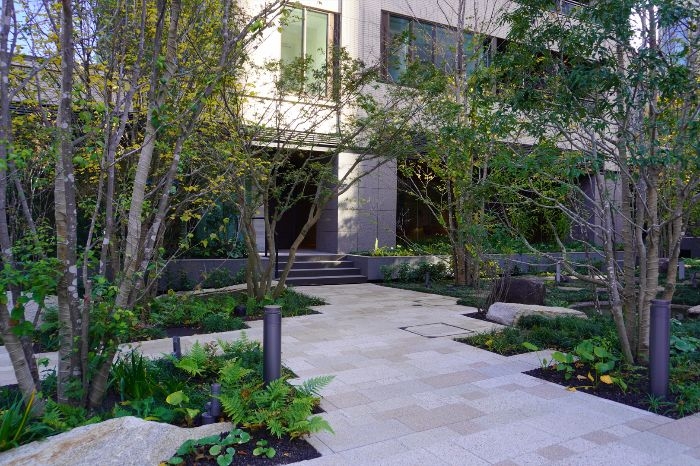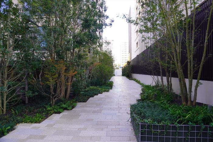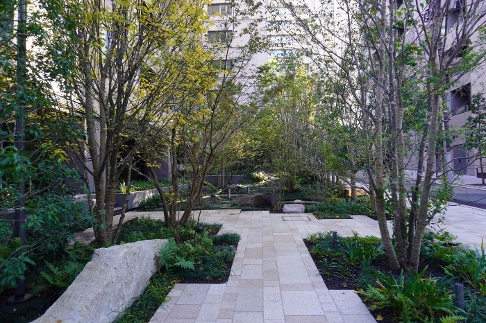 ガーデンエントランス側の公開空地の広場です。緑地が整備されています。