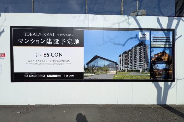 (仮称)千代田区九段南PRJの建設地仮囲いには、マンション建設予定地の広告が掲載されていました。