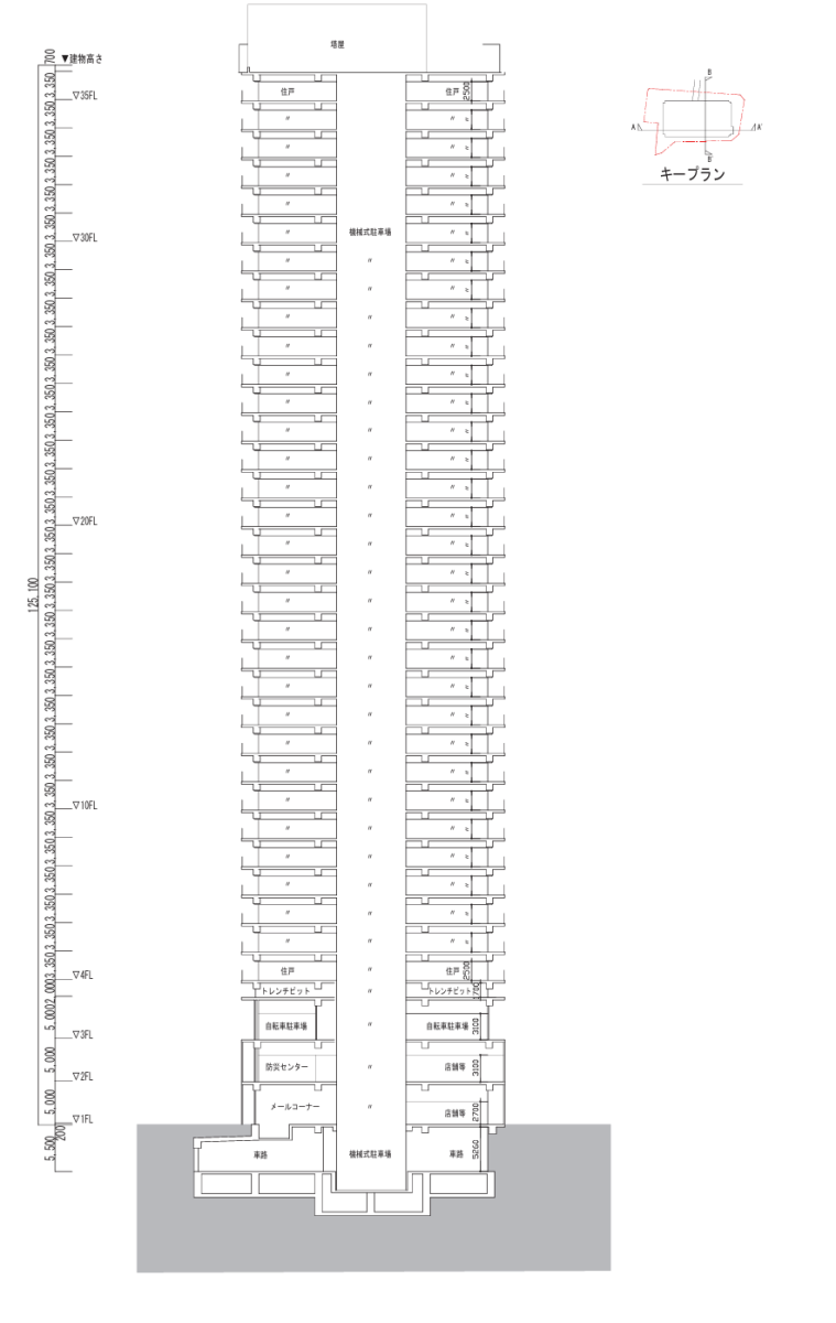 階数 南街区:地上35階、地下1階