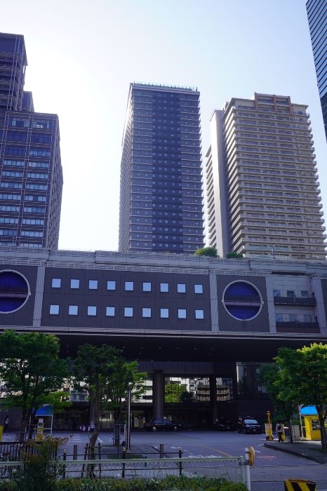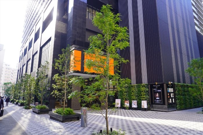 東側から見たアパホテル&リゾート〈大阪難波駅タワー〉の低層部分の様子です。