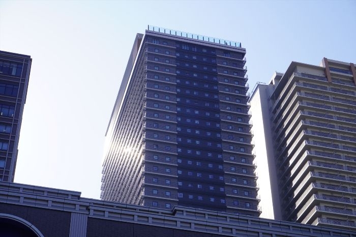 北西側から見たアパホテル&リゾート〈大阪難波駅タワー〉の高層部分の様子です。