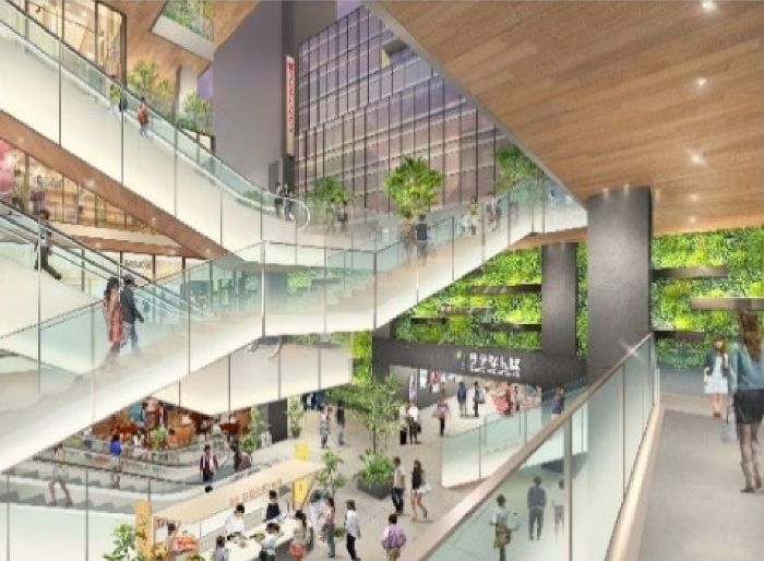 (仮称)難波千日前地点再開発プロジェクト新築工事は、商業施設・オフィス・ホテルの三つを核とした複合施設が計画されています。商業施設は、1階部分でなんば広場やなんさん通りとフラットに繋がり、街全体に賑わいを広げる構成とし、地下から地上までの吹抜けによって活気が上下階へと広がる空間を創出します。さらに地下2階では地下街「NAMBAなんなん」と接続口を拡幅し、回遊性と一体感を高めた計画とされています。